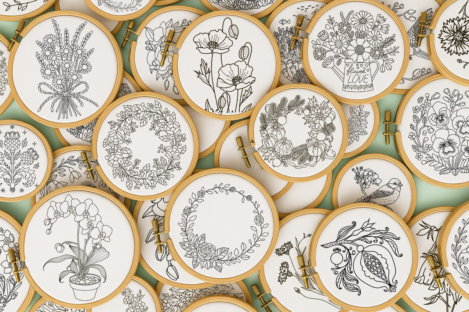 Autumn botanical embroidery, floral pattern for hand embroidery. An embroidery calendar. Autumn embroidery pattern. Simple embroidery pattern