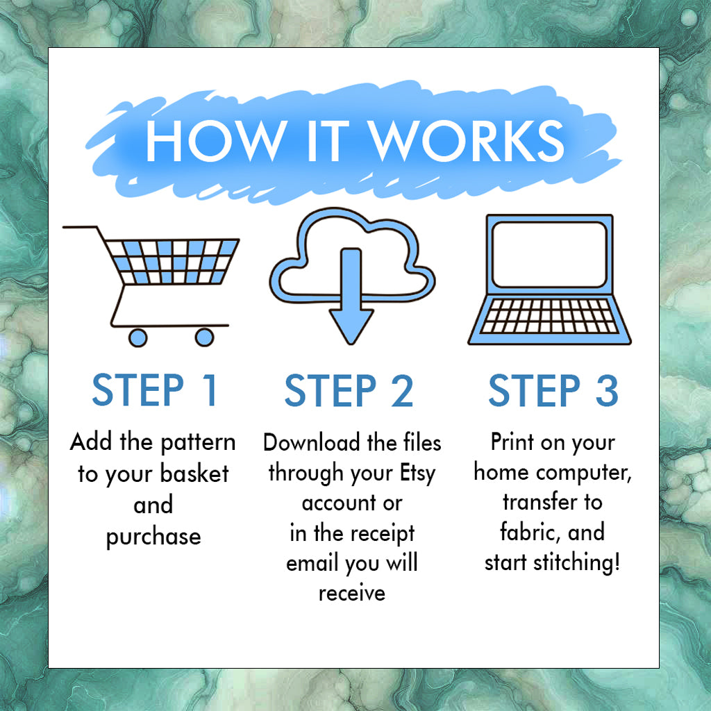- In the download section you will find a PDF file with basic instructions, including several options for transferring a drawing, preparing threads and fabric, etc. It also contains a link leading to a YouTube channel where a video instruction for beginners is posted. Please note that the video tutorial does not contain instructions on this particular design, it contains examples of the simplest embroidery stitches. What type of stitches and style to use is up to you.